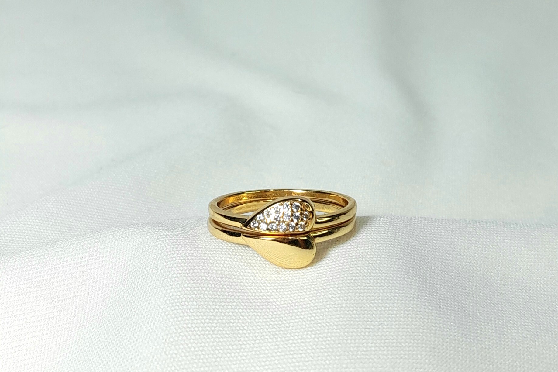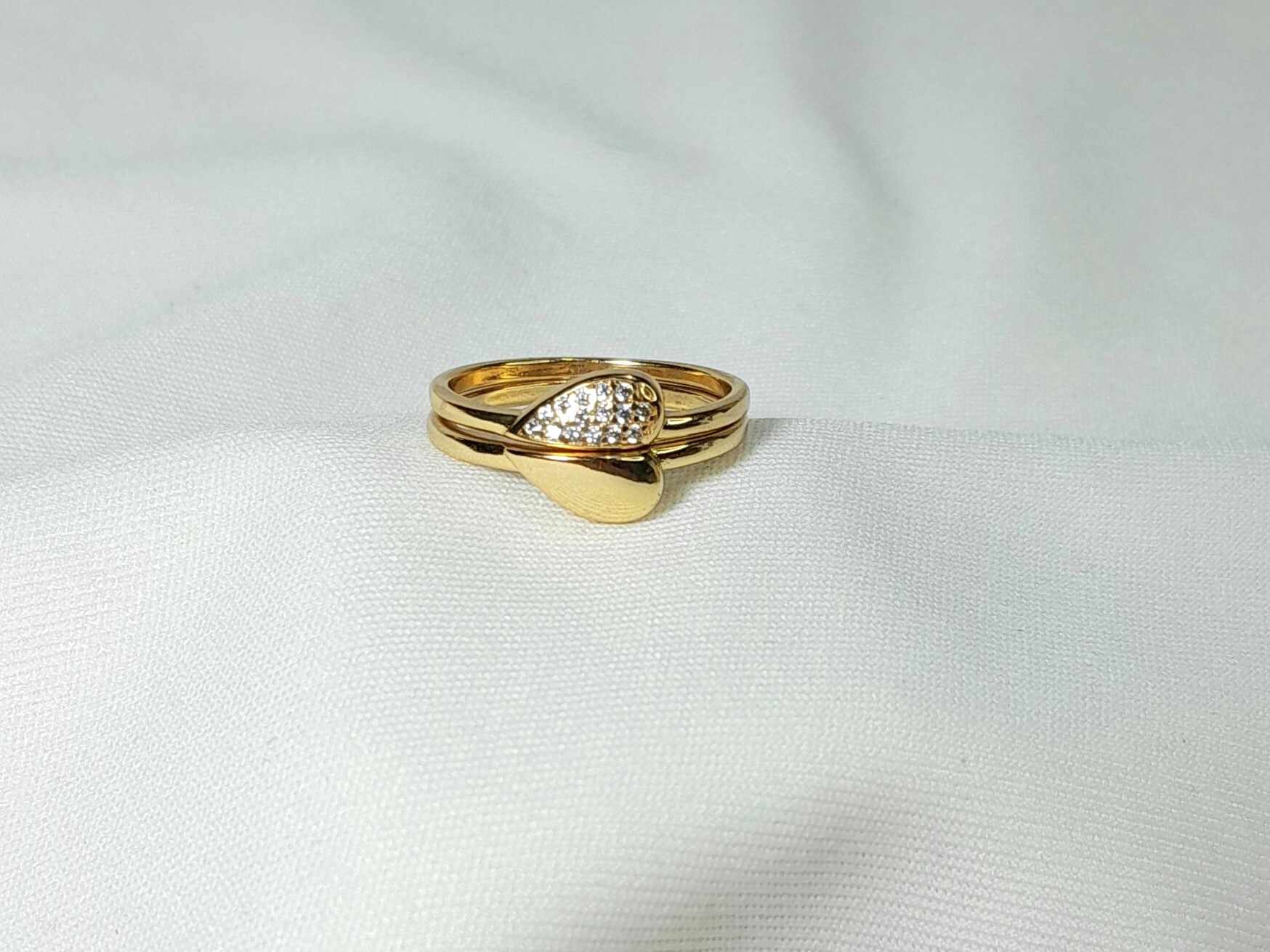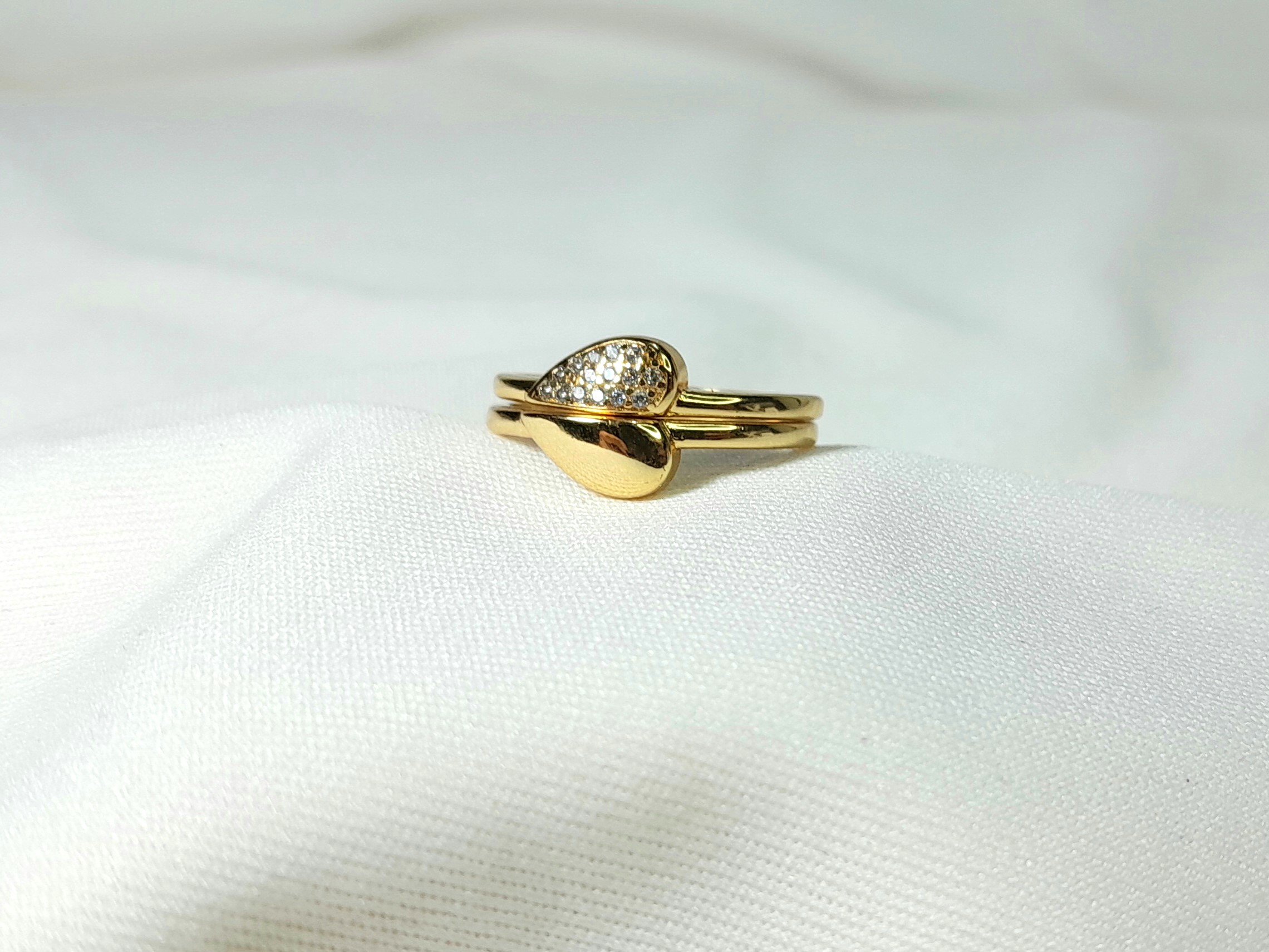 O anel possui um design elegante e moderno, com um coração centralizado que divide suas duas metades de forma única. De um lado, o coração é delicadamente cravejado com pequenos cristais, que brilham intensamente à luz, proporcionando um toque de sofisticação e brilho. No outro lado, o coração é liso e polido, com acabamento suave e impecável, criando um contraste sutil, mas marcante. A combinação das duas texturas faz deste anel uma peça encantadora, perfeita para quem busca um equilíbrio entre o clássico e o contemporâneo.