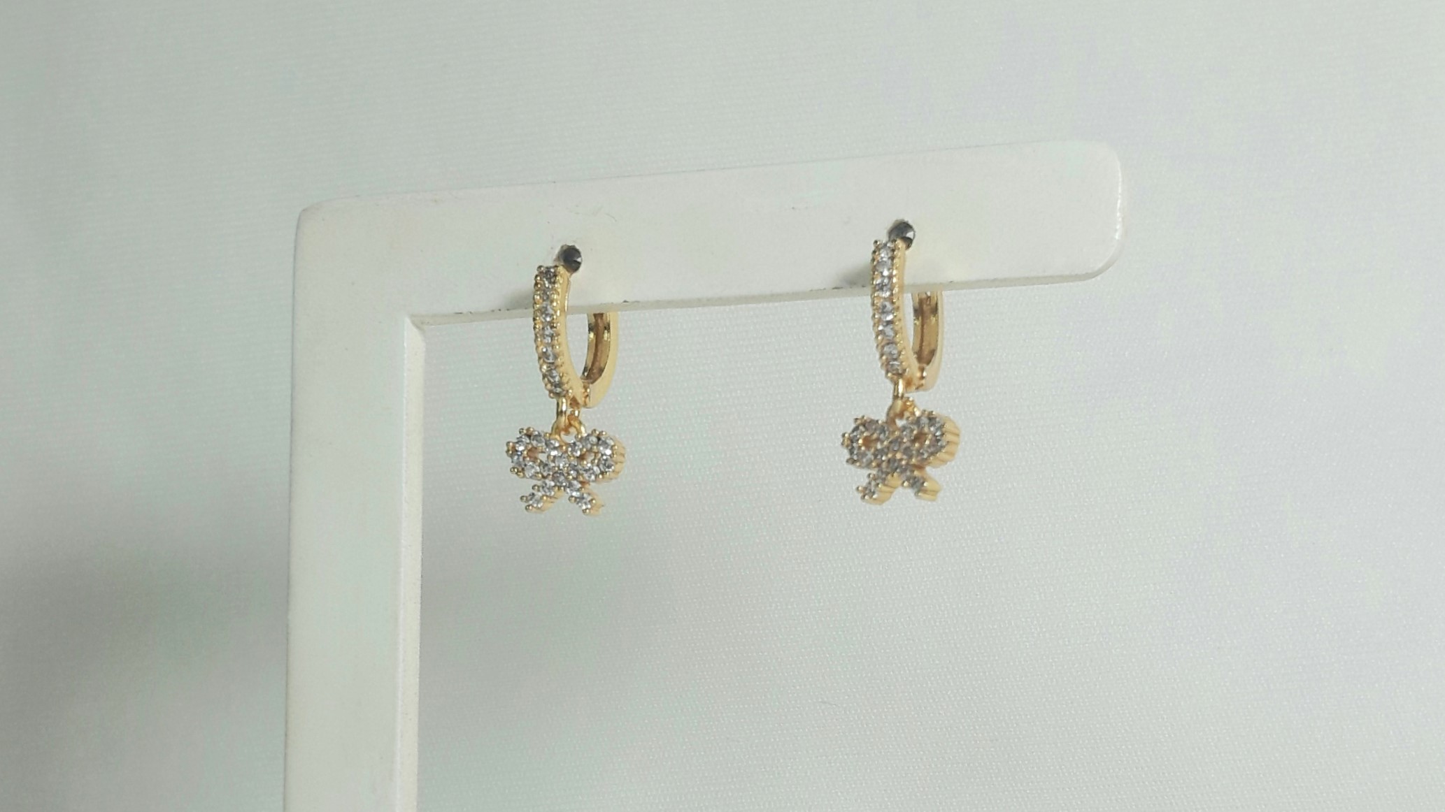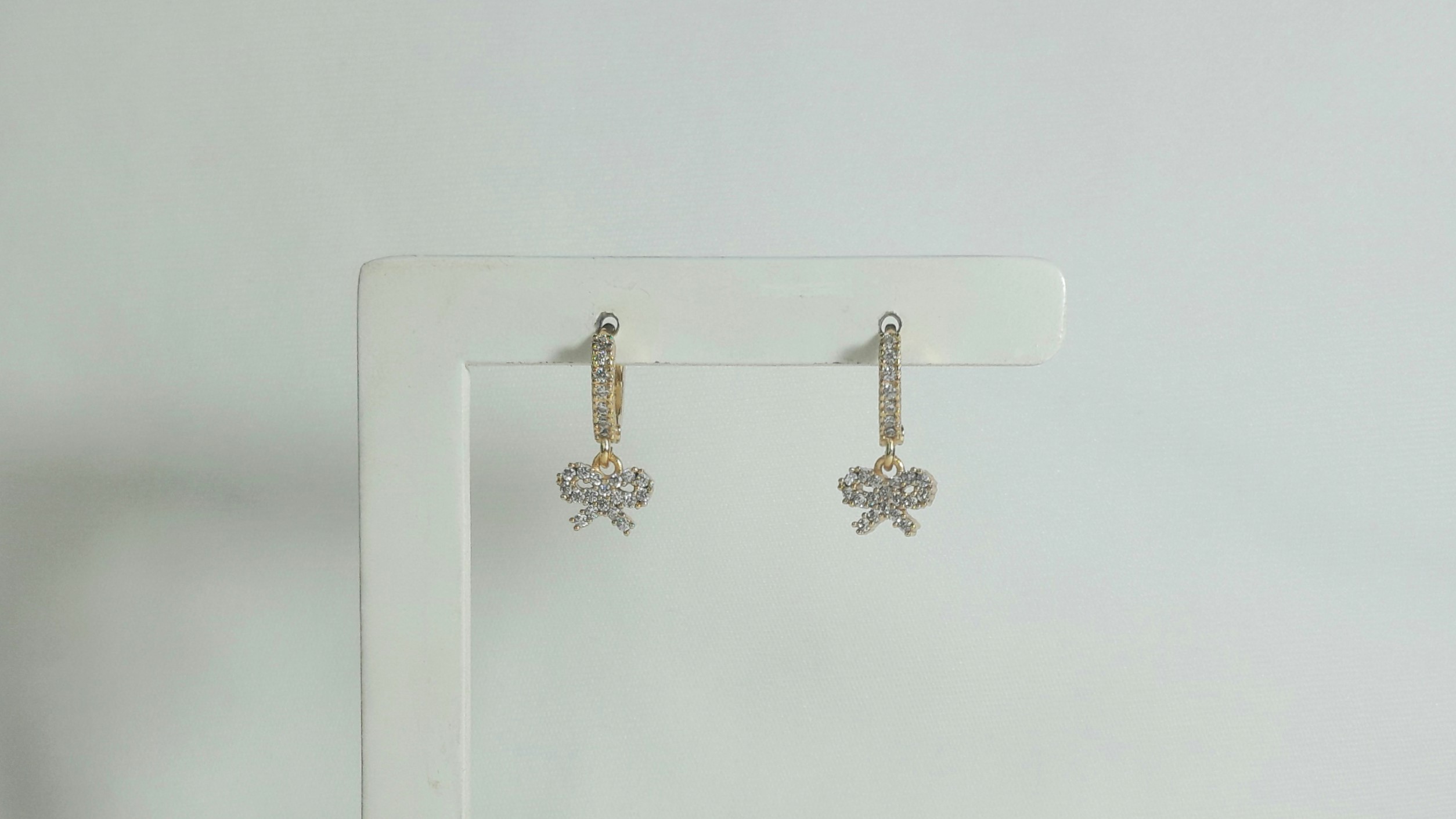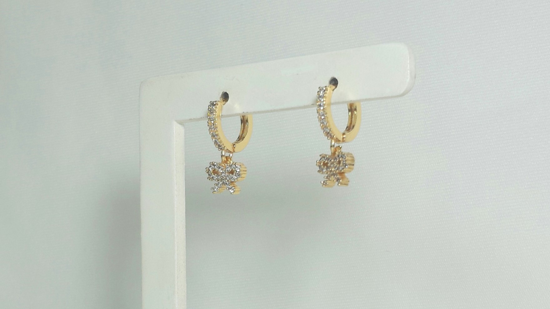 A pequena argola é delicada e elegante, com acabamento polido e discreto, perfeita para complementar qualquer look. Suspenso na argola, há um pingente em forma de laço, cuidadosamente cravejado com zircônias brilhantes. As zircônias, dispostas de maneira precisa, iluminam o laço com um brilho sofisticado, conferindo um toque de glamour sutil e refinado. O design do pingente, com seu contorno delicado e as pedras cintilantes, transmite um estilo feminino e encantador, ideal para quem busca um acessório elegante e atemporal.