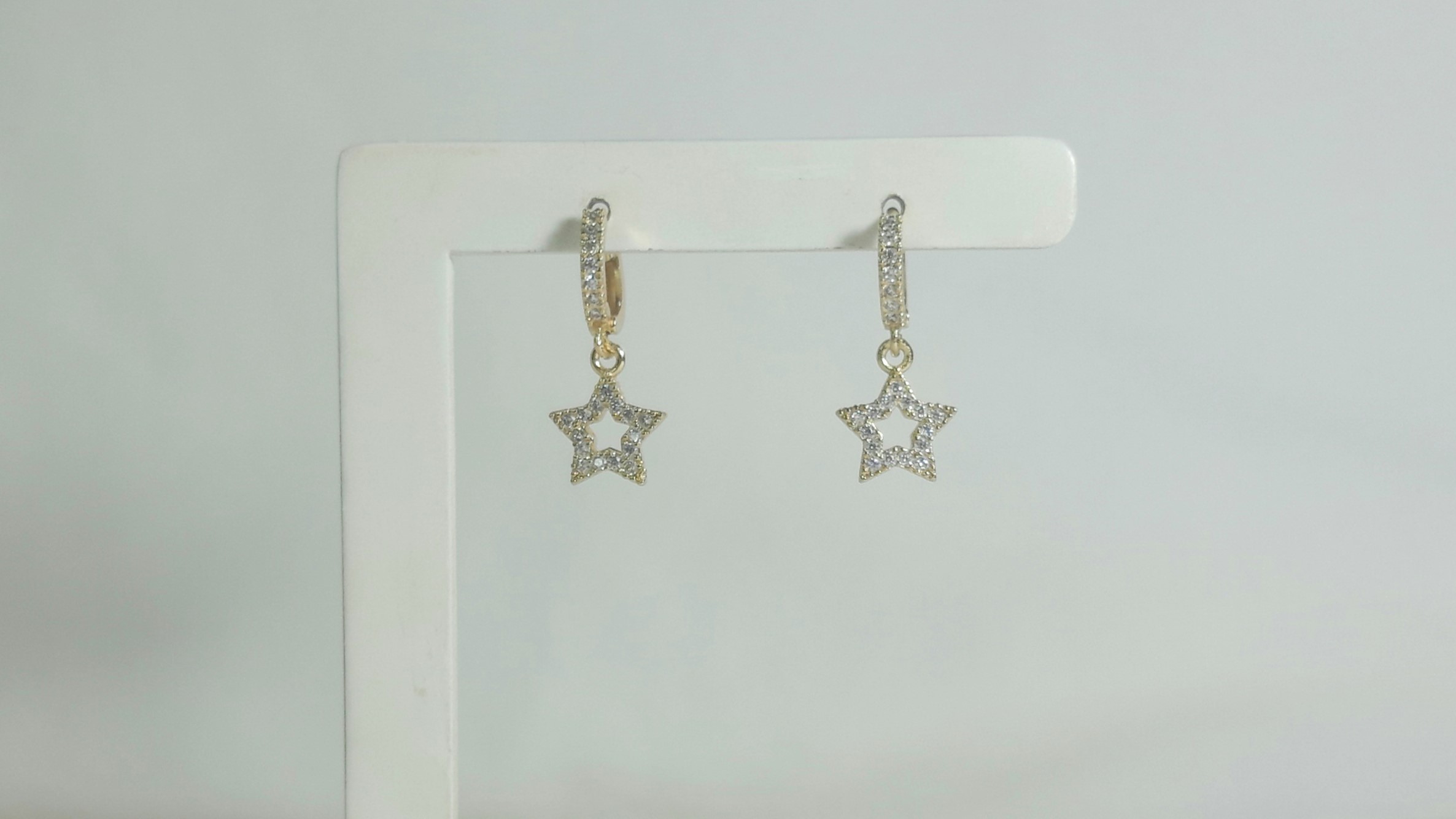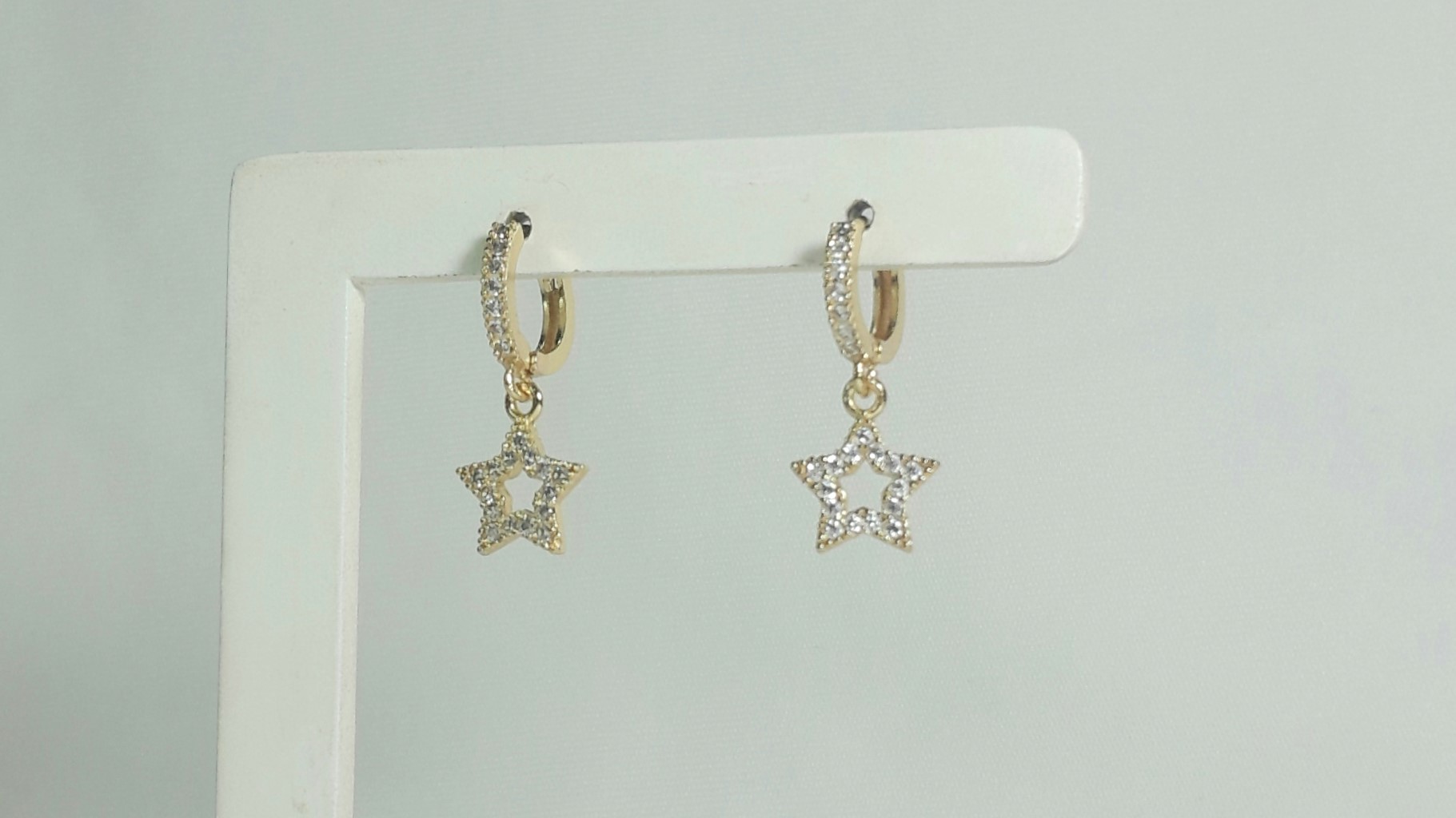 Um brinco delicado e sofisticado, composto por uma pequena argola de metal com acabamento polido e brilhante, ideal para um visual elegante e discreto. A argola possui um pingente em formato de estrela, cravejado com pequenas zircônias que brilham intensamente, criando um efeito cintilante e refinado. O design minimalista do brinco torna-o versátil, perfeito tanto para o dia a dia quanto para ocasiões especiais. Uma semi joia que combina sutileza e brilho, destacando-se pelo charme atemporal.