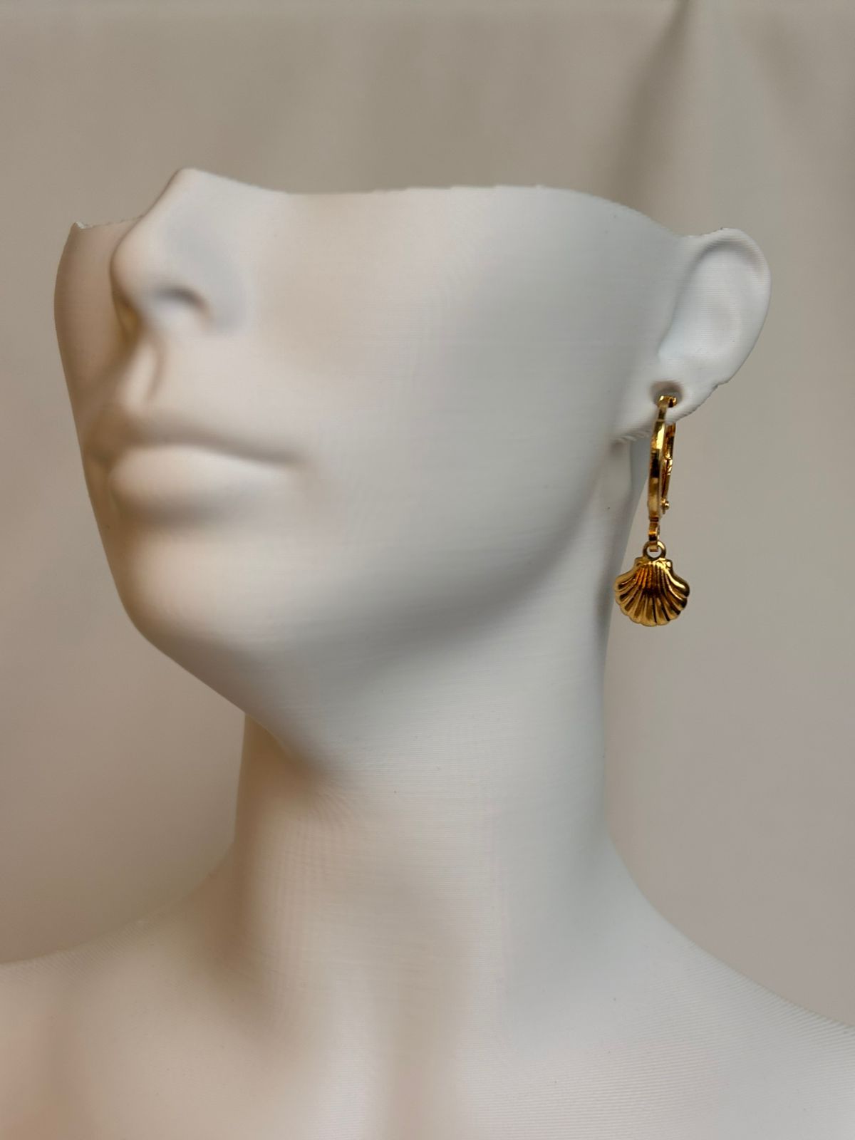 Brinco dourado banhado a ouro 18k, com pingente de concha, de design simples e delicado. Uma peça leve e atemporal, que traz um toque suave de elegância e inspiração natural, perfeita para compor looks do dia a dia ou produções mais leves. Ideal para revenda no atacado, com excelente aceitação por seu estilo versátil, acabamento de qualidade e fácil combinação com outras semijoias.