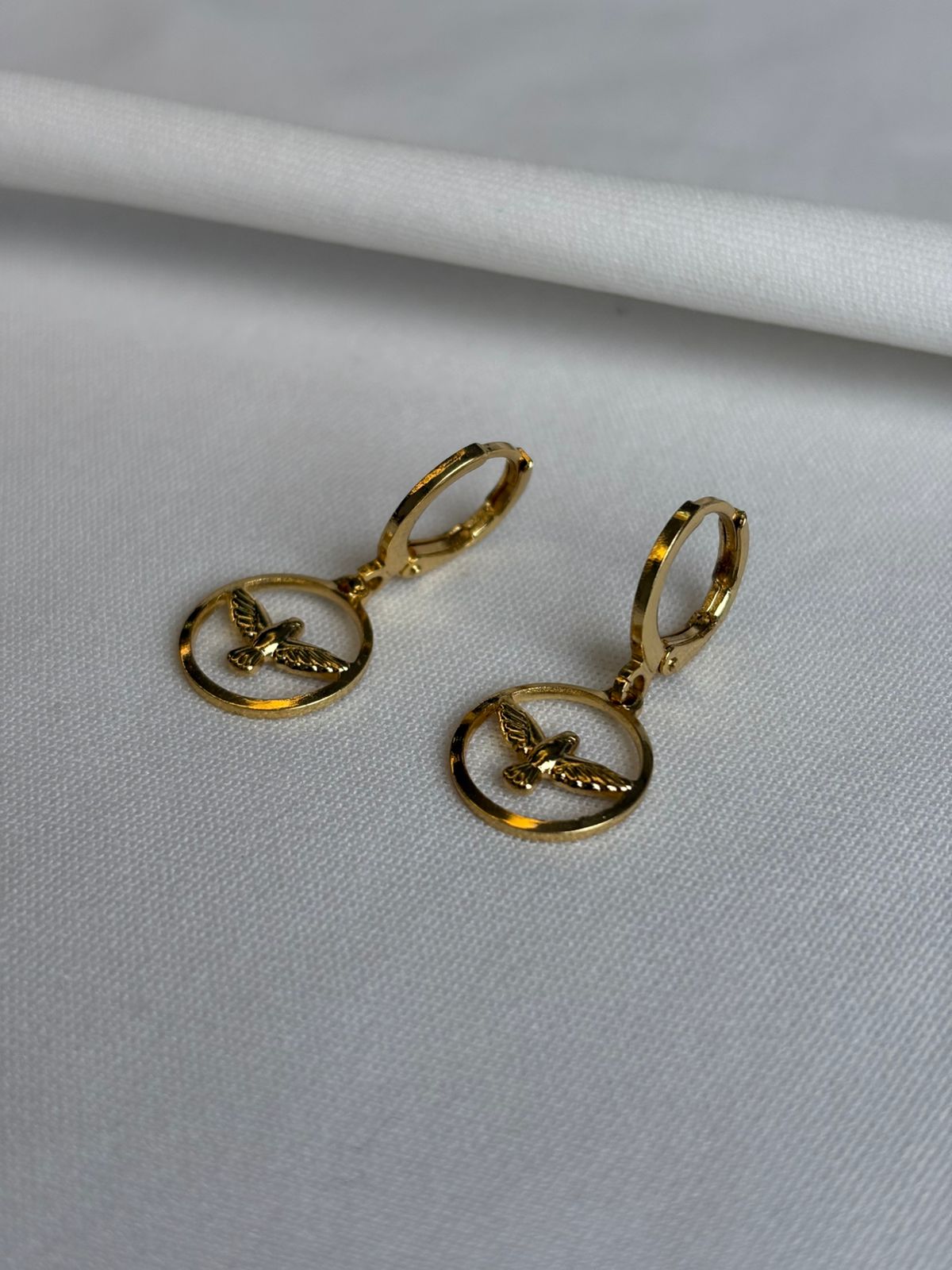 Brinco Espírito Santo liso e simples, banhado a ouro 18k, com design clássico e significado especial. Possui acabamento polido e visual discreto, ideal para clientes que valorizam peças religiosas delicadas e atemporais. Com excelente aceitação no varejo, é uma semijoia de fácil venda e alta rotatividade, perfeita para compor mix de atacado com produtos versáteis, simbólicos e de ótimo custo-benefício para lojistas.