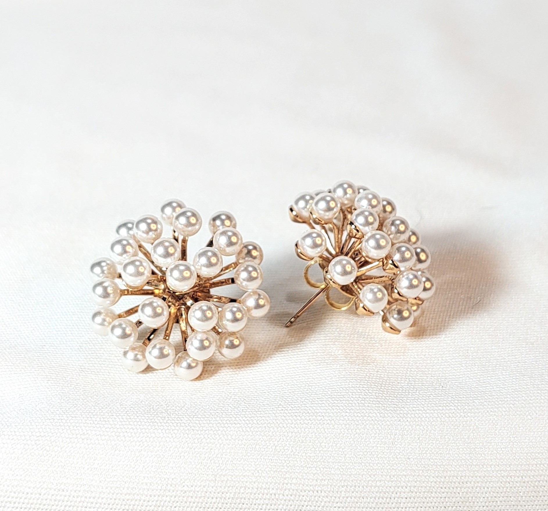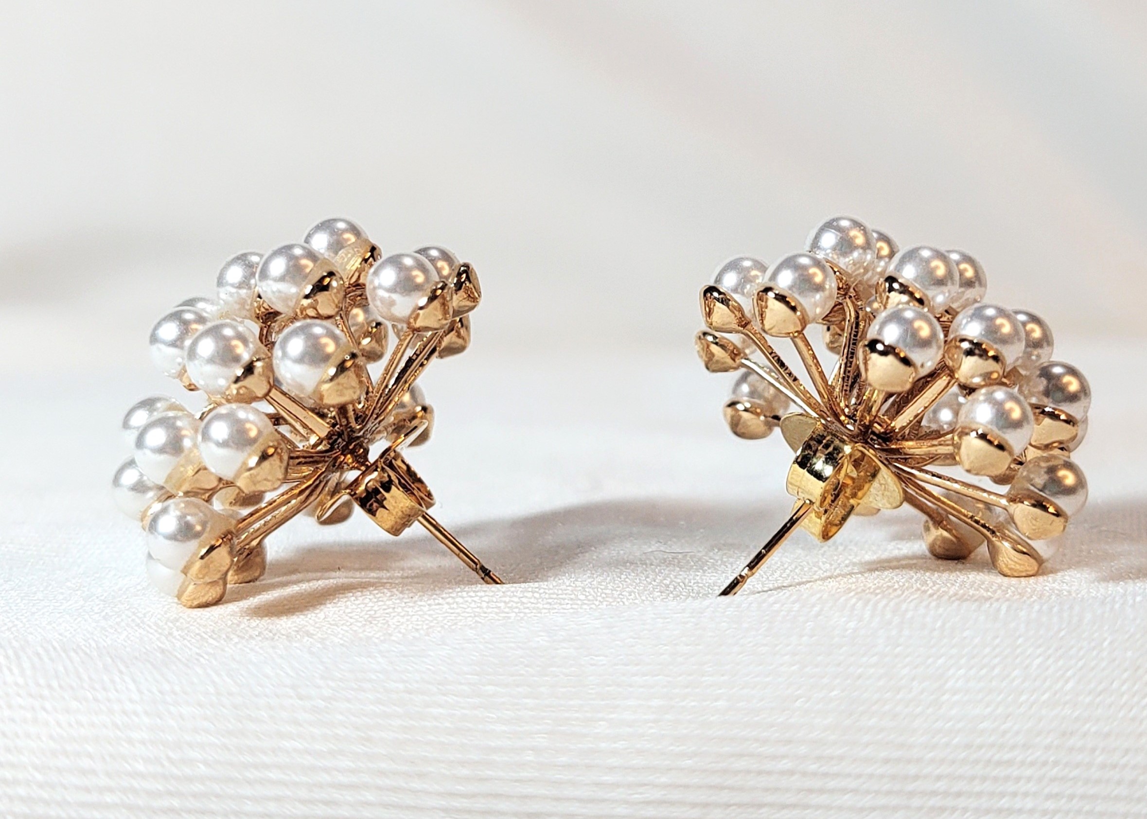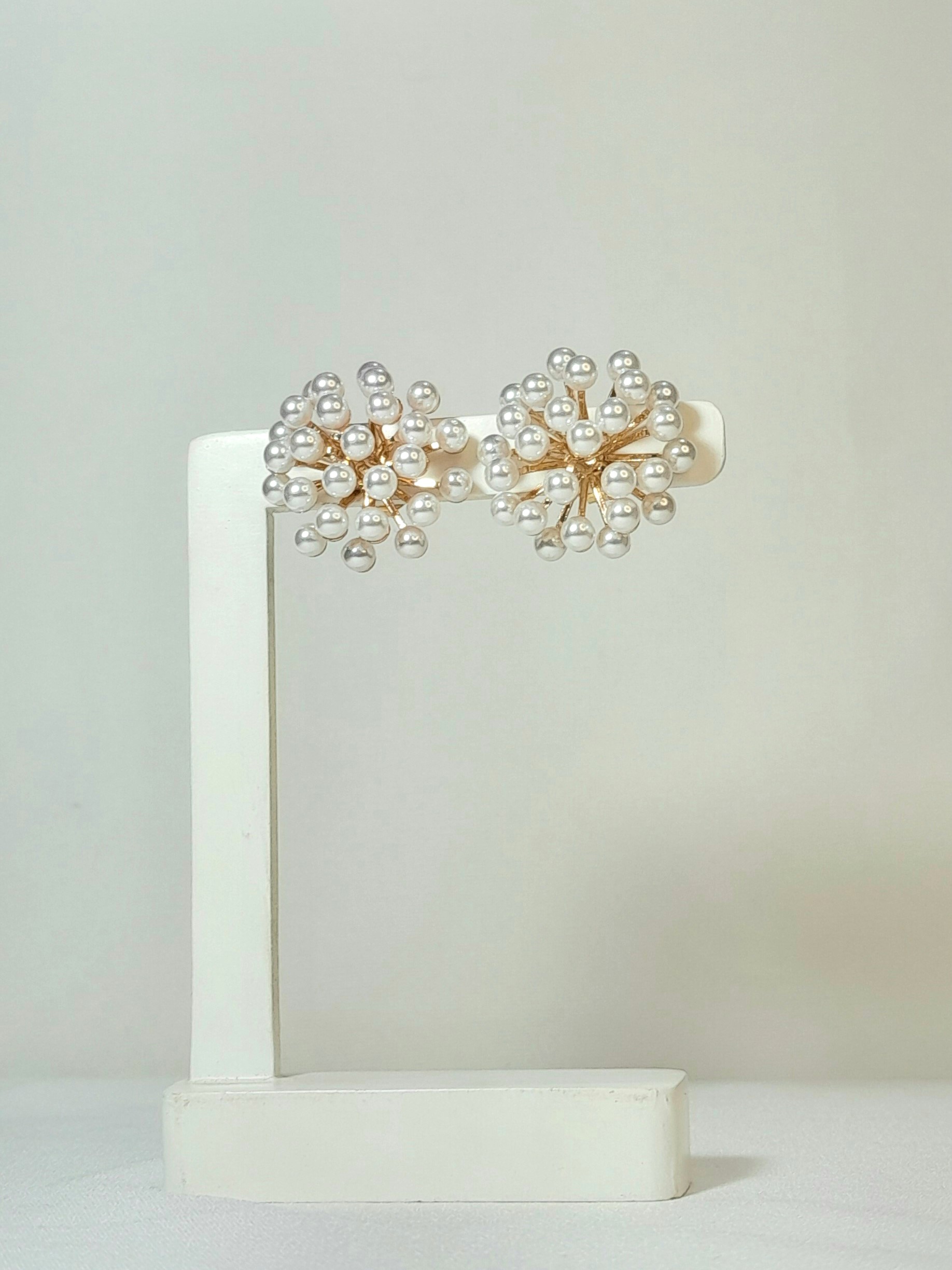 Este par de brincos exibe um design sofisticado, com pequenas pérolas cuidadosamente dispostas em uma estrutura dourada que forma um elegante padrão floral. As pérolas conferem um toque clássico e orgânico, enquanto o dourado realça o brilho sutil. Uma peça versátil, perfeita para momentos especiais ou para elevar a elegância do seu look.