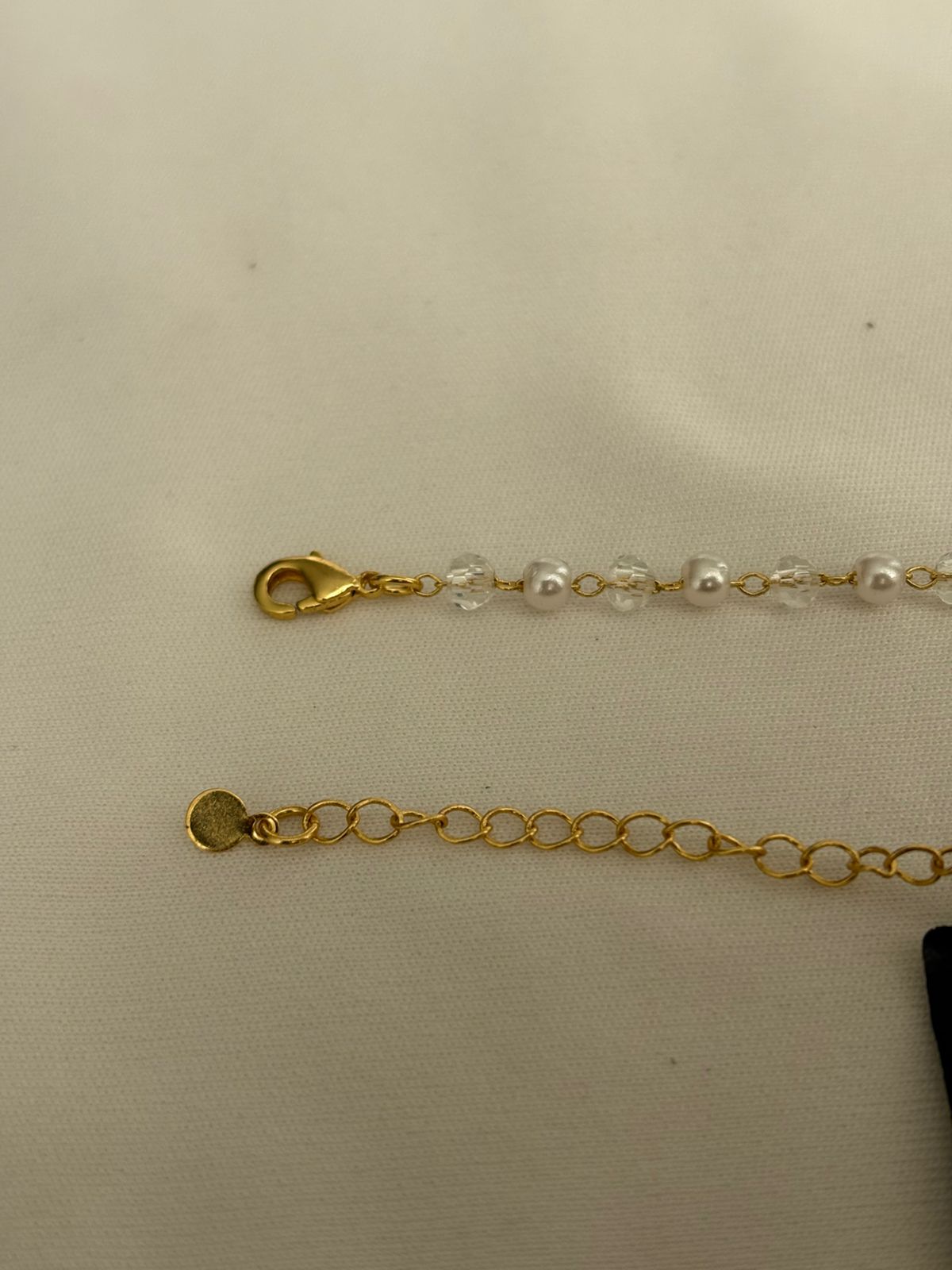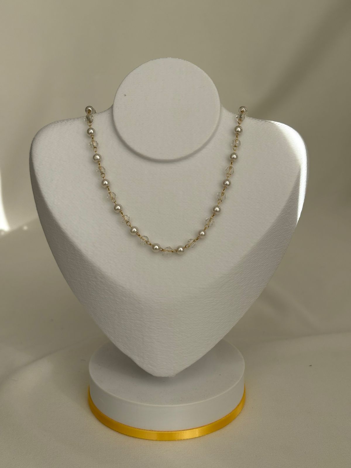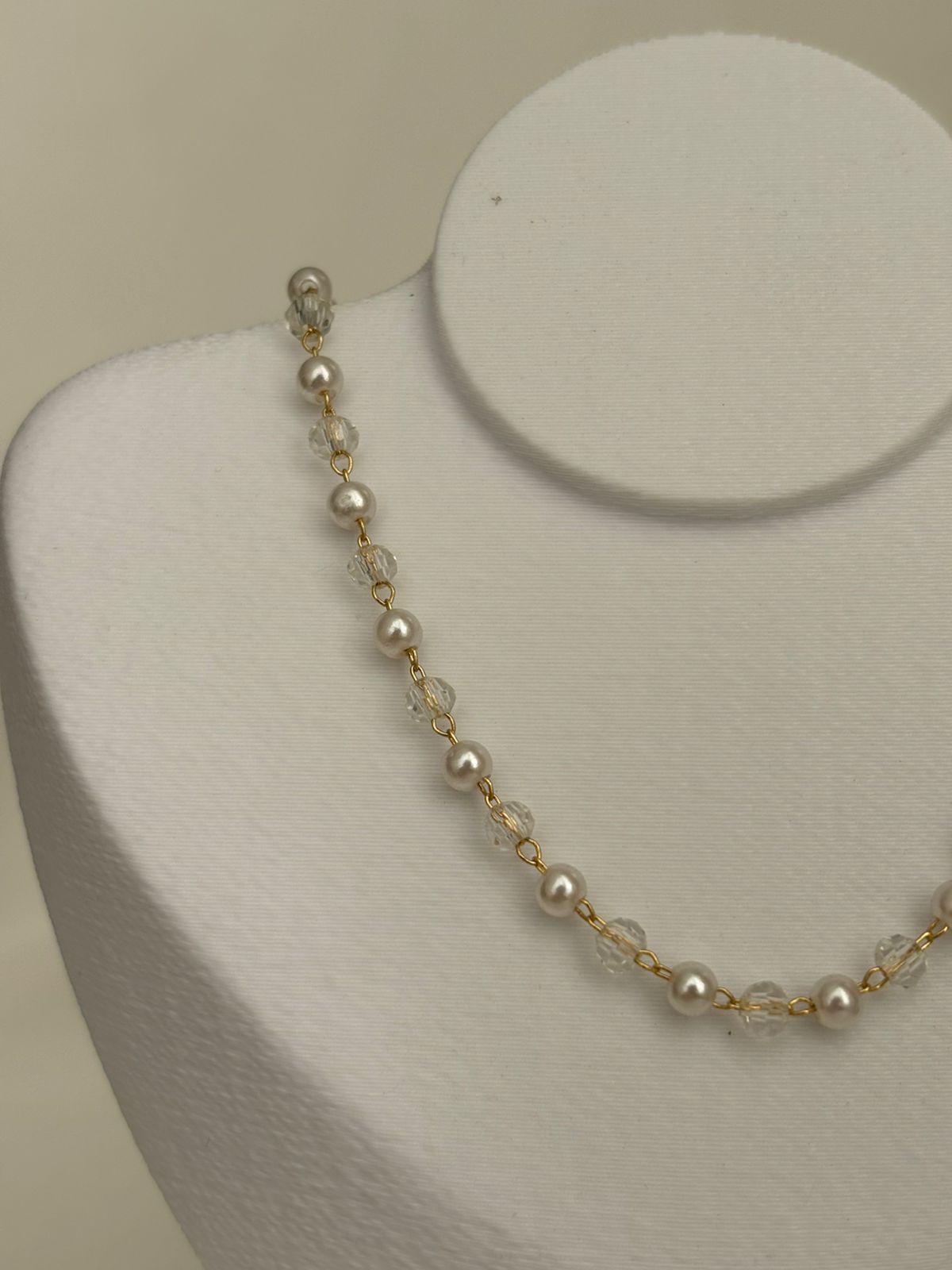 Elegante e delicado, o colar choker de pérolas com cristais é a escolha ideal para quem ama sofisticação com um toque de brilho. As pérolas trazem um visual clássico e atemporal, enquanto os cristais adicionam luminosidade e charme na medida certa. Com ajuste perfeito ao pescoço, essa choker valoriza o colo e compõe produções que vão do casual ao elegante, sendo ideal para usar sozinha ou em combinações modernas.
