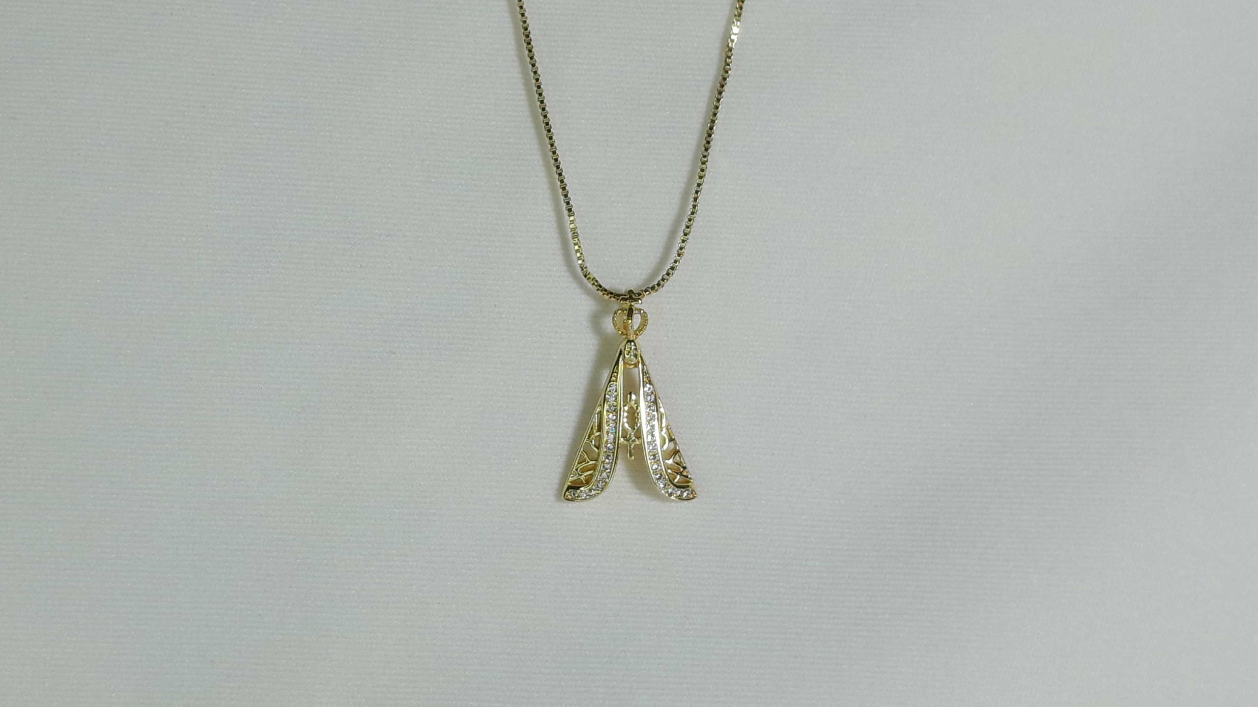 Este colar banhado a ouro 18k exala elegância e espiritualidade. A corrente veneziana delicada sustenta um pingente deslumbrante de Nossa Senhora Aparecida, cuidadosamente cravejado com zircônias cristal que conferem brilho e sofisticação à peça. Perfeito para ocasiões especiais ou para quem deseja carregar consigo um símbolo de fé e proteção com um toque de luxo.