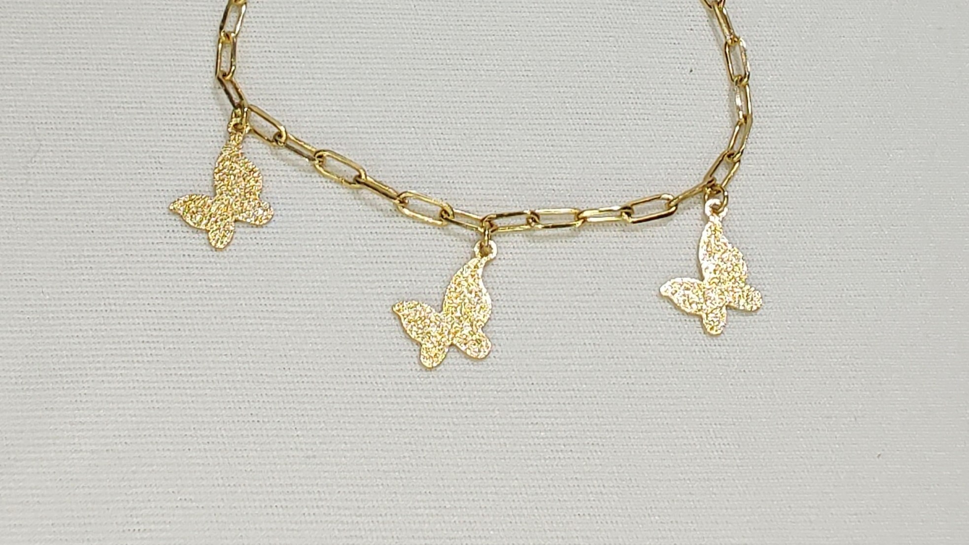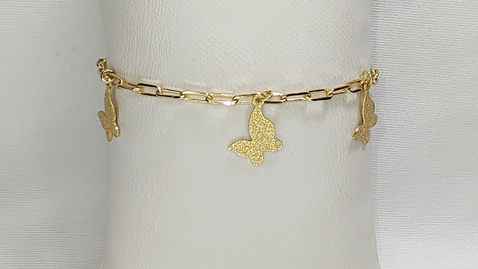 Na pulseira cartier com pingentes em borboletas foscas mas com o aspecto brilhante, o acessório tem um grande significado. A borboleta é um símbolo de transformação e renovação, trazendo um significado especial para a pulseira. A semi joia no banho em ouro 18k combina bem com diferentes estilos e ocasiões não deixando de trazer delicadeza e sofisticação ao seu look.