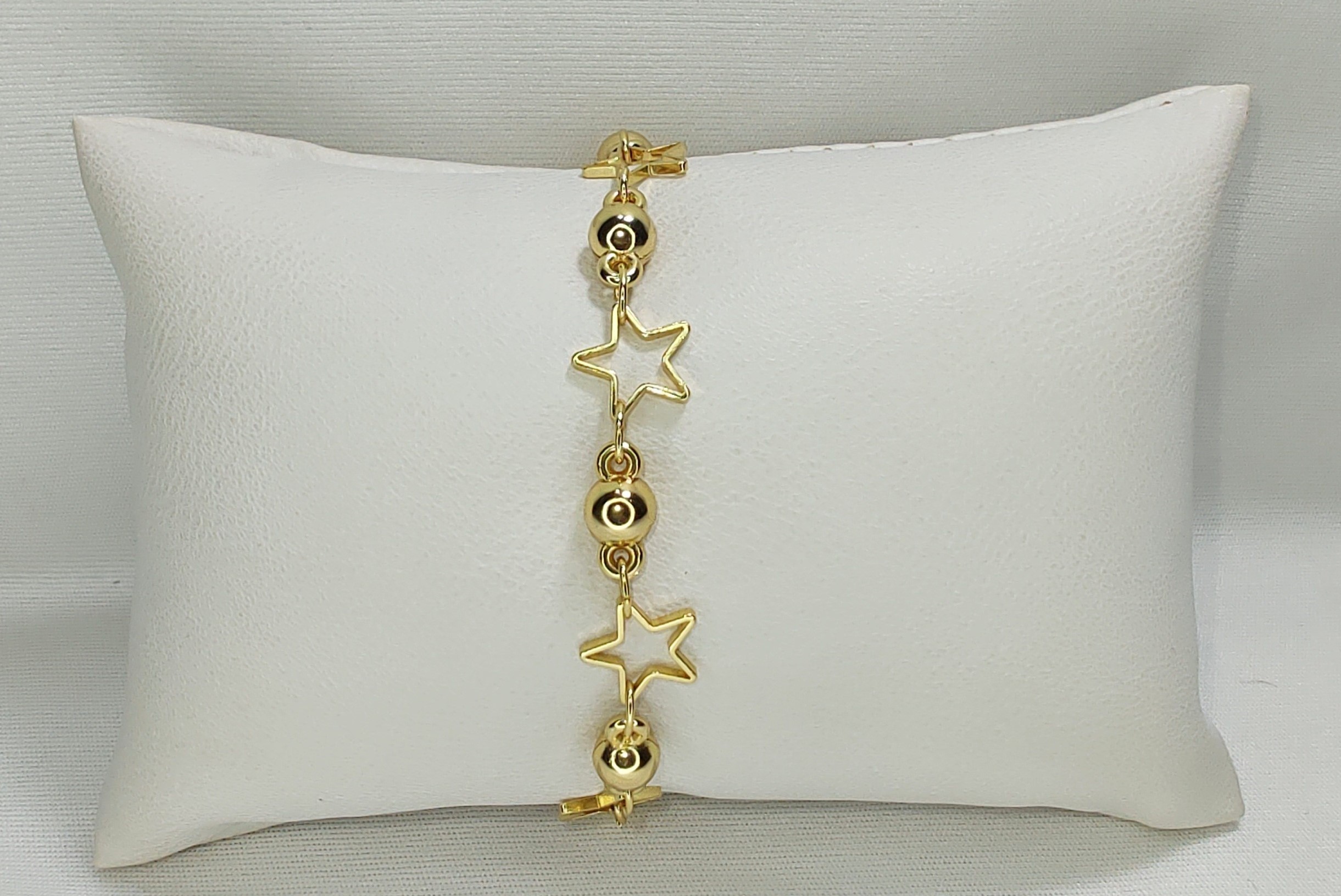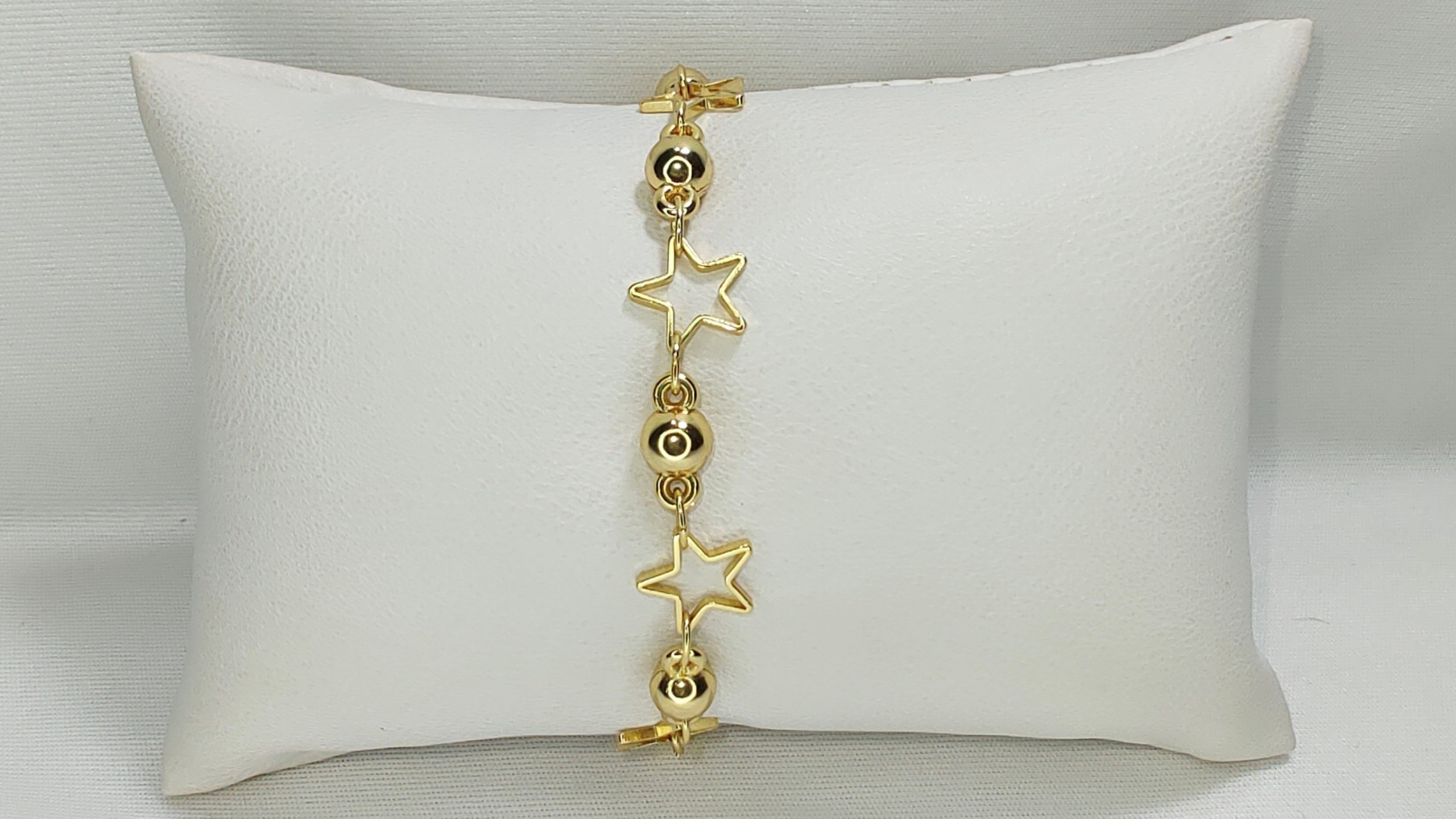Esta pulseira estreladas traz em seu desing estrelas e bolinhas. As estrelas são símbolos de desejo, inspiração e proteção, enquanto as bolinhas adicionam um toque de delicadeza e feminilidade à pulseira. Juntas, elas criam um contraste harmonioso que chama a atenção para o seu pulso. Podendo te acompanhar em todos os momentos casuais diários ou mais sofisticados.